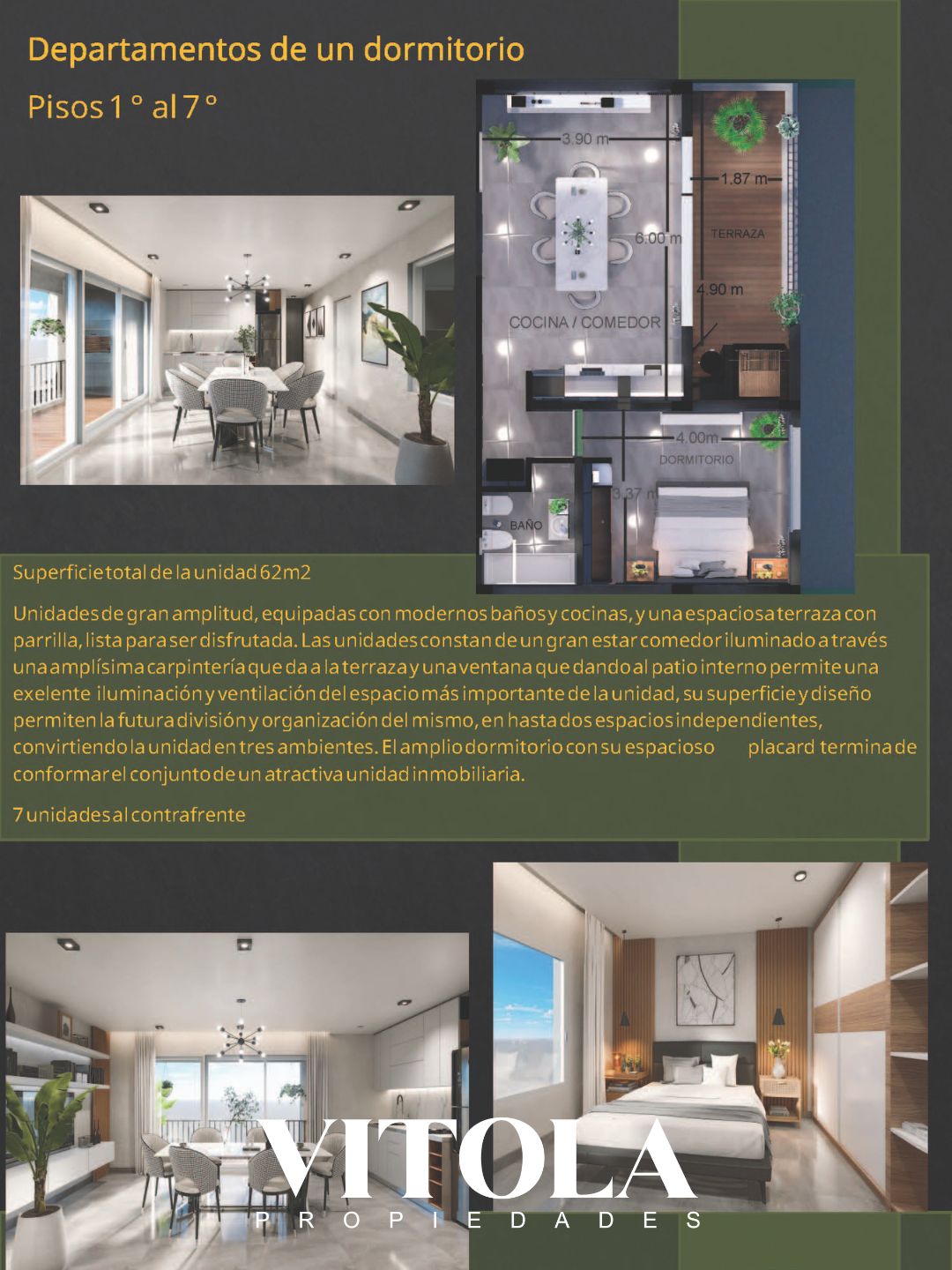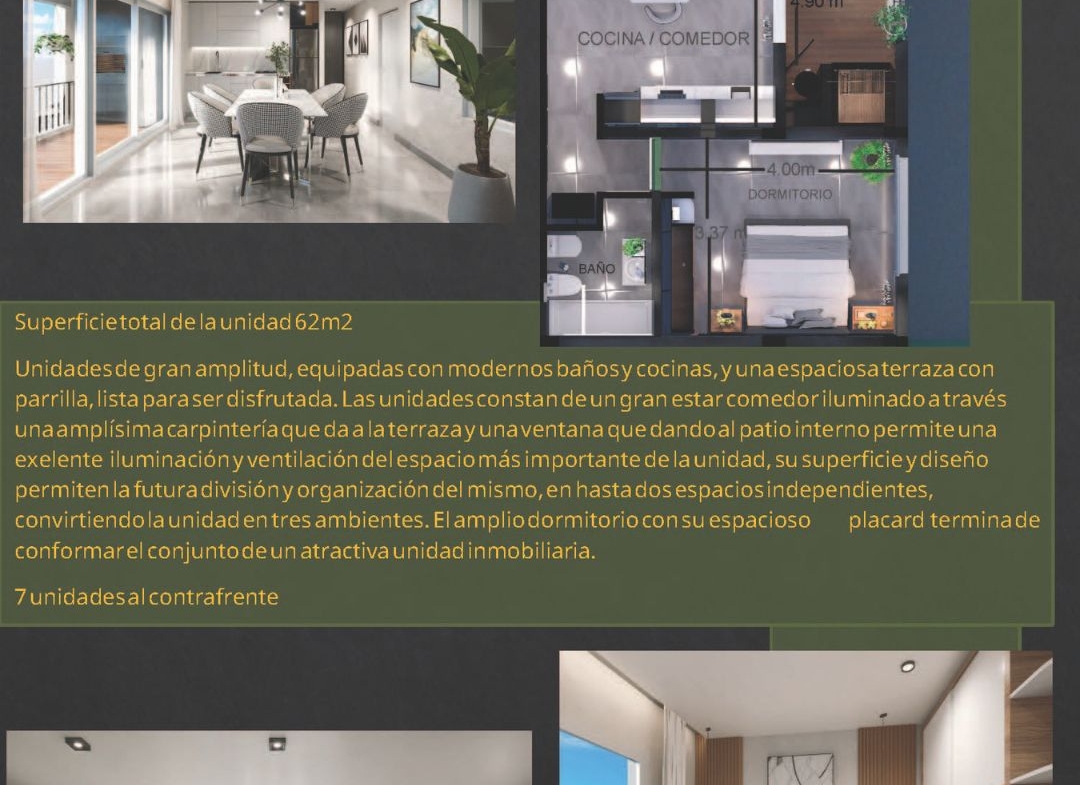 – DPTO 1 DORMITORIO: 62m2. (1 DISPONIBLE 5TO PISO CONTRAFRENTE CON BALCΓN Y PARRILLA) / πΈπ$π πππ.ππππΈ